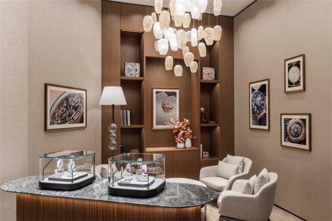 延续品牌一贯的设计风格,宝玑广州太古汇精品店兼具优雅奢华气质与现代美感。精湛严谨的传统工艺与不竭的制表热情贯穿于整个店铺设计之中,细节之处均可见宝玑的匠心理念。在柔和的灯光设计下,尊贵的宝玑蓝、温润的胡桃木、典雅的大理石与线条流畅的玻璃展柜相互映衬,展现品牌时计独特的机械美学与精妙的制表技艺。店中亦设有贵宾专属空间,采用高雅的木质设计,营造奢雅私密的时计鉴赏氛围,为每一位宾客提供尊享服务,沉浸在高级制表艺术之中,尽情探索宝玑的时计臻品与历史文化。